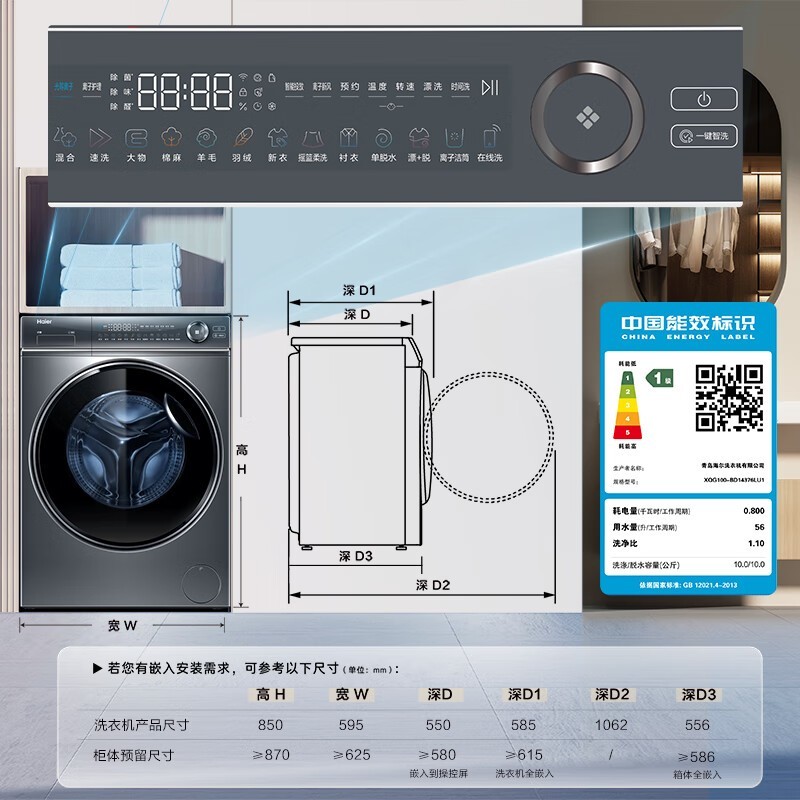 海尔云溪滚筒洗衣机10kg直降千元限时特惠